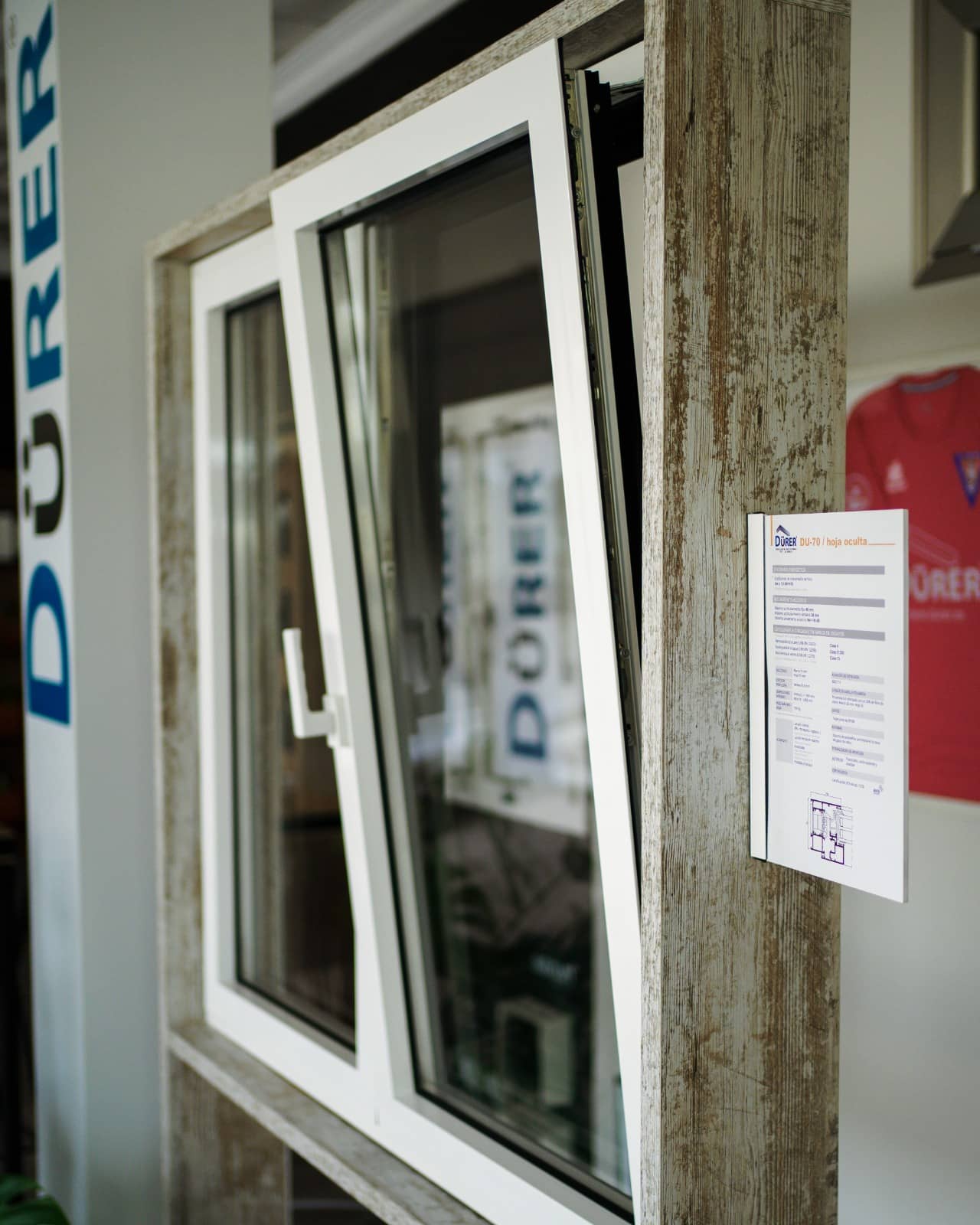 - Marcos de aluminio combinados con acabados interiores de PVC.